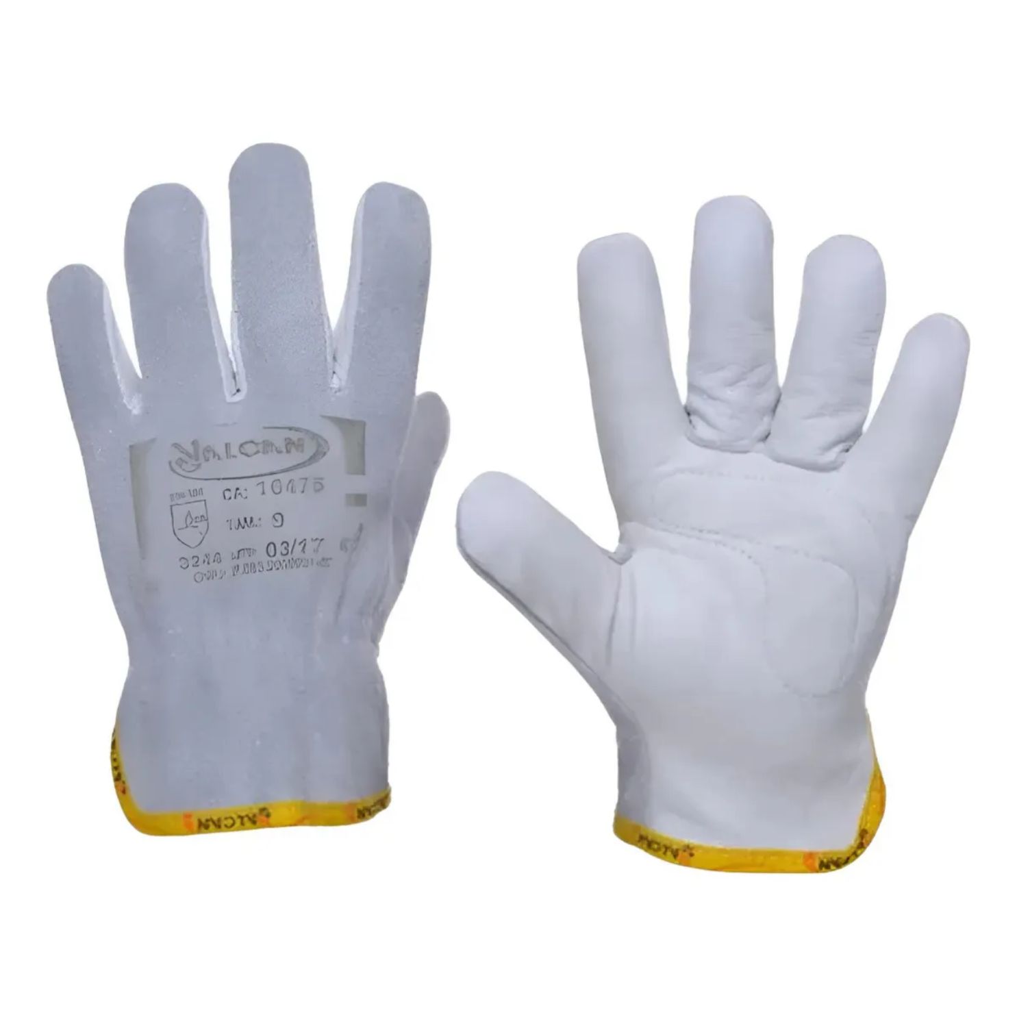 Luva de segurança confeccionada com palma em vaqueta e dorso em raspa, tipo petroleira, com elástico embutido no dorso e costura em linha de nylon.